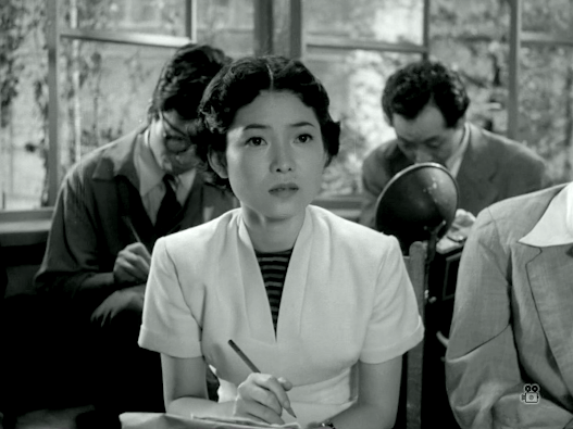 Although distributed byShochiku, this is (like the previously reviewed Wedding Day) an independent production by Kindai Eiga Kyokai, thecompany formed by director Kozaburo Yoshimura, screenwriter Kaneto Shindo andactor Taiji Tonoyama in 1950. Shindo’s screenplay is based on a series ofstories written by Shusei Tokuda (1872-1943) about his relationship with themuch younger writer Junko Yamada (1901-61), and it’s clear that Tokuda andJunko are the basis for the characters of Inamura and Yoko. In the film, theflighty and sometimes childish Yoko seems a highly unlikely writer, but it maybe that her portrayal is close to the reality of Junko Yamada. According toJapanese Wikipedia, although she published more than 10 books and dozens ofessays in magazines and newspapers, she was never taken seriously because of howshe had been portrayed in Tokuda’s stories, and is remembered mainly as thesubject of scandal rather than for her literary work. (Of course, it could bethe case that this lack of attention from the critics was unfair).