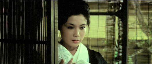 ThePrecipice was shot in Daiei’s briefly-adopted VistaVisionprocess, with an aspect ratio of 1.85:1, so it’s a little unusual in thatrespect as it was the 2.35:1 format that rapidly became standard in Japanaround this time, replacing the old academy ratio of 1.33:1. Masumura and hiscameraman Hiroshi Murai (who later shot Swordof Doom) use the VistaVision format to good effect here, pinning thecharacters down with clever blocking of scenes, with the camera closely followingtheir every movement, and managing to squeeze in two or even three of the maincharacters at once when appropriate.