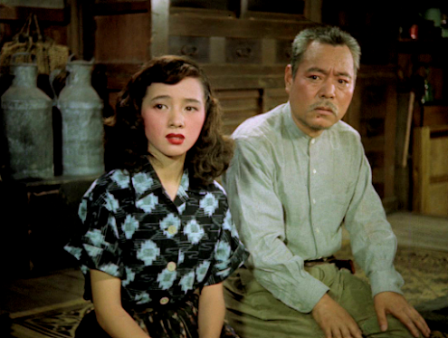 This is a veryconservative film whose drama revolves around the classic Japanese formula of giri (obligation) versus ninjo (inclination), especially in thecase of Yoshiko, who feels a strong sense of duty towards her family but wantsto go off to Okinawa with Junichi. The film also pits the countryside againstthe city. Ultimately, giri and thecountryside win – almost nobody gets what they thought they wanted, but it allworks out alright in the end. Wanting to go off to Tokyo is seen as youthfulfolly, i.e. something the young naturally have to get out of their systembefore they can become sensible and mature human beings. The roles of the twosisters are reversed at the end when Momoko gets a job in Tokyo, but there’s asense that sooner or later she’ll become disillusioned with city life andreturn to Kanagawa.