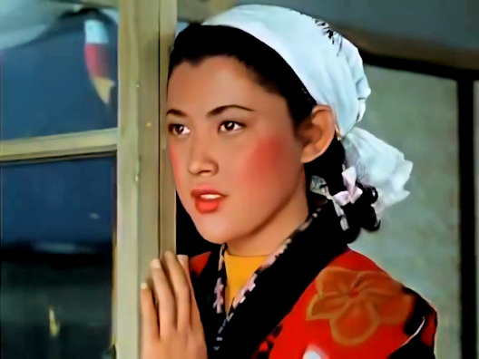 If that partialsynopsis rings a bell, that’s because this is a clever recycling of Othello – the setting and thepersonalities may be considerably altered, but essentially Gonsuke is Iago,Tomekichi is Othello, Oshin is Desdemona and the foreman is Cassio. Due to the waythe plot unfolds, it’s clear that this is no coincidence, especially if we takeinto account that the film was based on a 1962 novel by Tsutomu Mizukami (orMinakami), who would certainly have been familiar with the major plays ofShakespeare. Mizukami was a fine writer whose other filmed novels include The Temple of Wild Geese, Bamboo Dolls of Echizen, Straits of Hunger (aka A Fugitive from the Past) and Lake of Tears (also starring YoshikoSakuma). I recommend the Dalkey Archive’s English translation of The Temple of Wild Geese and Bamboo Dolls of Echizen in one volume ifyou can find it.