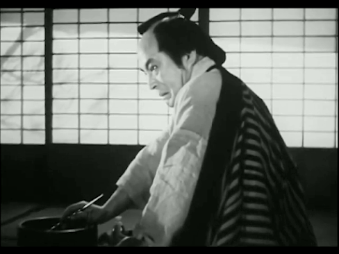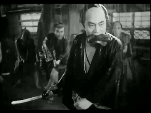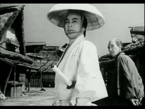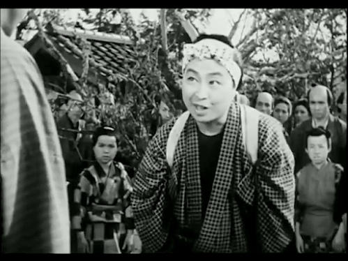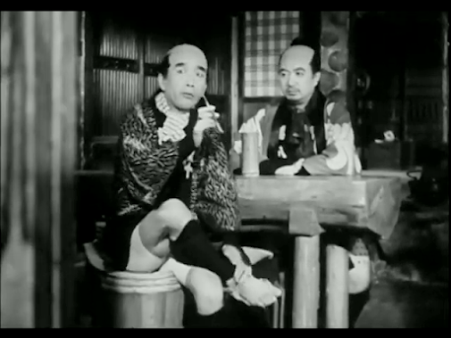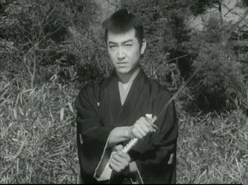This Daiei production stars silent screen veteran Denjiro Okochi as Takizo, a wandering samurai and master swordsman who returns incognito to the town where he was born, hoping to shake off some men pursuing him. Once there, he meets Sahei (Koichi Katsuragi), a widowed farmer, to whom he will later confess that his mother (now deceased) was a maid who became pregnant by a criminal and had to give birth to him in a warehouse.