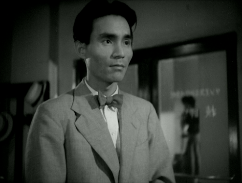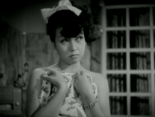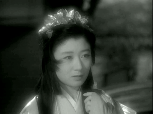 This was already Kyo’sfifth picture since being signed as a ‘new face’ by Daei the same year; evenbefore that, she had built up years of stage experience as a member of theOsaka Shochiku Girls’ Opera Company, which she had joined in 1936 at the age of12. As a member of that company, she had also appeared in two Shochiku films, Tengu daoshi and Danjuro Mitsuyo (both 1944), the latter of which was directed by noneother than Kenji Mizoguchi (and is presumably lost as there seems to be verylittle information about it online). Althoughthe part of Naomi was not Kyo’s first leading role in a film, in the light ofits prestigious literary origin it seems fair to say that it was her firstreally important one. In any case, the confidence with which this apparentnewcomer performs the role is perhaps not so surprising given that she hadalready been performing for 13 years by the time the film was made.