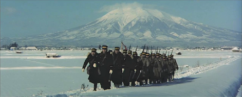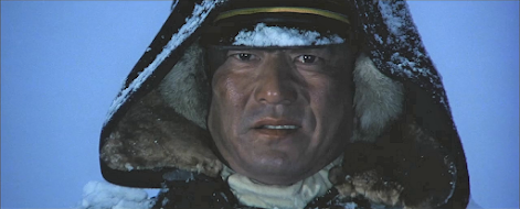 I’m fascinated by tales of survival and love films shot in rugged locations, so I thought this would be right up my street, but I was disappointed for a number of reasons. Although the location photography is indeed impressive (the actors and crew were working in incredibly harsh conditions), Mount Hakkoda unfortunately has little else to recommend it and is far too long and drawn-out. It’s basically three hours of men being stupid, and no opportunity for overacting is missed - except by Ken Takakura, of course, who was incapable of such a thing. Kinya Kitaoji and Rentaro Mikuni also put in decent performances, but too many of the others unnecessarily shout every line of their dialogue in a ‘WHAT I’M SAYING IS REALLY IMPORTANT!’ kind of way. Perhaps this is overcompensation due to the utter lack of memorable characters in the film. Some scenes are also completely unconvincing; in one unintentionally funny sequence, a soldier goes mad, strips off all his clothes and promptly drops dead. We are told that the sweat on his body instantly froze when he stepped outside the shelter and into the freezing air, and that this is what killed him. Yeah, right. Another character supposedly bites off his own tongue to commit suicide, something which I also doubt is possible. Such nonsense might be more forgivable were it not for the fact that this is based on a true historical incident. But we are in movie-land here, which is also made clear when Kumiko Akiyoshi turns up as a beautiful young villager who guides the soldiers part of the way, putting them all to shame as she skips effortlessly through the snow while the men struggle and gasp for breath behind her. Other members of the all-star cast, such as Keiju Kobayashi and Tetsuro Tanba, are wasted in nothing roles.