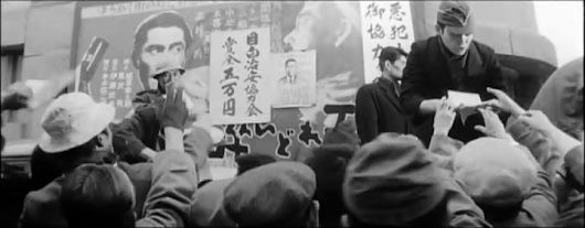 Kumai chooses not to focus on any one character; instead, he concentrates his attention on details of the investigations by both the police and the press. He frequently crams the frame with large groups of policemen and journalists (often seen fanning themselves or wiping the sweat from their necks), painting a picture of post-war Tokyo as a hot, overcrowded and oppressive place just as he would in his later film Wilful Murder (1981), which has a great deal in common with this one. Wilful Murder differs in approach mainly in giving us a central character to identify with (the crusading journalist played by Tatsuya Nakadai) and is arguably more engaging for that reason. Kumai works hard to make his film more than a compilation of scenes of men explaining stuff by throwing in a couple of fights and generally keeping things moving as much as possible. His next film, A Chain of Islands, covered similar ground but used a fictional story, and he would go on to expose other incidents he viewed as injustices his country had tried to sweep under the carpet in a number of future works, such as Sandakan No.8 and The Sea and Poison.