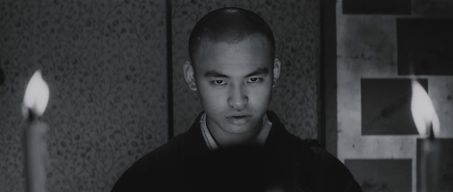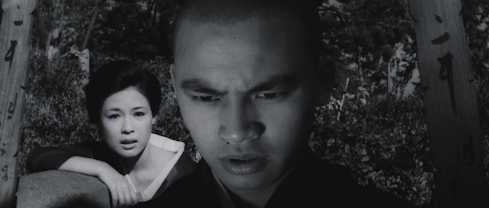 Stout character actor Masao Mishima had perhaps his largest and best screen role here as the saké-guzzling, acolyte-abusing dirty old priest, and certainly makes the most of it. His incessant humming was an especially good touch, I felt, and in his hands Jikai comes across as even more despicable than he does in the book. It’s perhaps unsurprising, then, that the film’s release was the subject of indignant protests by many among the Buddhist community in Japan at the time. The star of the show, however, is Ayako Wakao, whose performance is flawless as usual. The role is an almost perfect fit for her, while the little-known Kuniichi Takami is also a good choice as Jinen, although he understandably lacks the slightly misshapen head of the book’s protagonist.