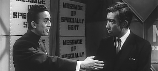 The film opens with scenes of the middle-aged, overworked Zensaku (Makoto Fujita) enduring a variety of annoyances on his daily commute to the accompaniment of some sardonic narration by Masao Mishima which seems to suggest we’re in for a comedy. However, despite a further comic scene involving a ludicrous invention for repelling perverts on the tube (Zensaku works in a patent office), the tone soon turns serious as this apparently walking-dead non-entity finds himself suddenly confronted with the past in the shape of the fiancée from whom he had been separated during the war (Michiyo Aratama) and the officer who had beaten him so badly that it had permanently damaged his hearing (Kei Sato). Zensaku’s dull life is turned upside down by the reappearance of these two, while a number of flashback sequences increase our understanding and sympathy for this unlikely hero as he contemplates leaving his unhappy marriage and struggles to be a good parent to his directionless son (Toshio Kurosawa), who is flirting with becoming a member of Japan’s Self-Defence Force.
