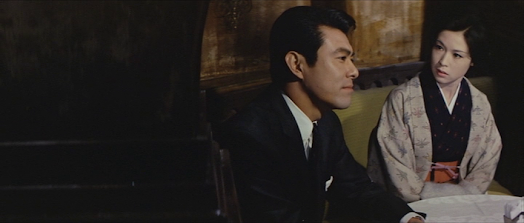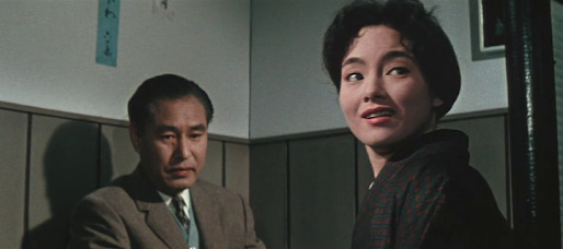 Although some Japanese films notoriously feature actors slapping each other for real, the slapping in this film is rather poorly done – it’s obvious there’s no contact, yet we’re treated to a sound effect that sounds like a whiplash on sheet metal. It’s nice to know that nobody slapped Ayako Wakao though. I suspect a body double was also used for some of her scenes here.