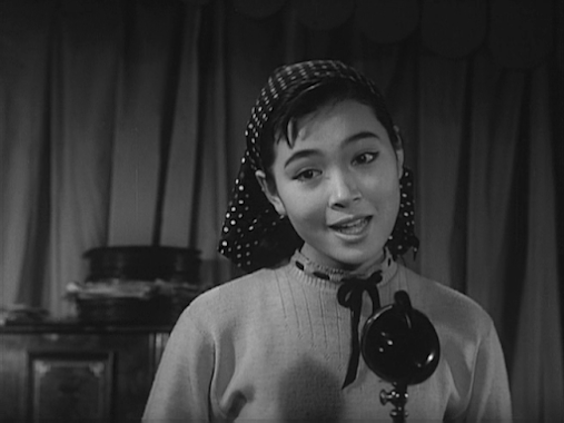 Hideko is played by top-billed Sachiko Hidari, best-known for later films such as The Insect Woman (1963) and Under the Flag of the Rising Sun (1972). In contrast to the serious actress she later became, the younger Hidari seen here is typical of her earlier screen persona: lithe, petite, cheerful and fast-talking. In real life, she was of a more sober temperament; a highly intelligent feminist, she later directed a film of her own, The Far Road (1977).