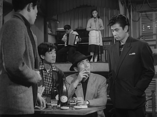 Other customers include a group of beret-wearing pseudo-intellectual beatniks who prattle about existentialism, and gambler and ex-soldier Kibe (Daisuke Kato), who is surprised when his former commander, Colonel Otsuka aka ‘The Demon’ (Eijiro Tono), walks in. Otsuka is an embittered man who claims to be working as a real-estate broker but is clearly short on funds. However, the most important character is Umeda, a regular who used to be a painter but now makes a living of sorts playing pachinko. From his usual stool at the end of the bar, Umeda regards the tragedies that unfold around him with kindness and pity and is quick to help those in need when he can.