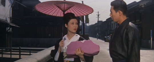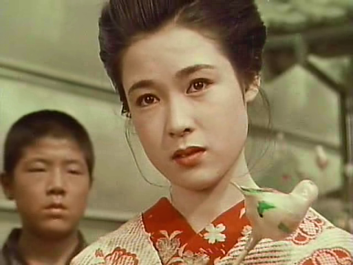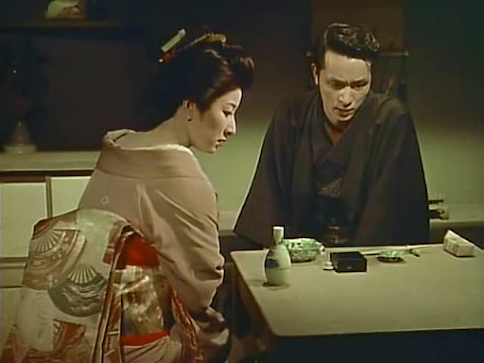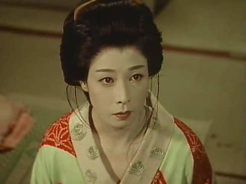 Okoh’s rival is Kiyoha (Fujiko Yamamoto), who has a less revolting suitor in the well-dressed and educated Katsuragi (Ryuji Shinagawa), although he states rather disconcertingly that he yearns to marry her because she reminds him of his missing sister. Unfortunately, Kiyoha has a ‘sponsor’ with whom she has an illicit child, so she’s in no position to marry.