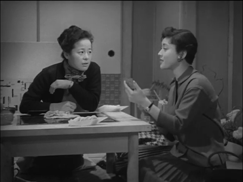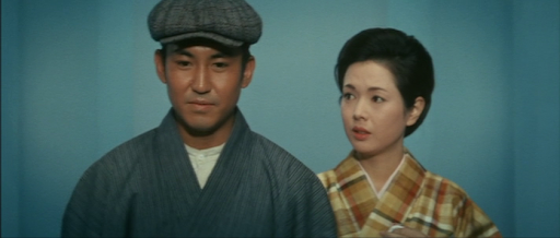 In terms of acting, the female stars all acquit themselves admirably; although Ayako Wakao has the more minor of the three roles, her skill is evident in a scene in which she chats with her grandfather while cooking a meal and doing all sorts of complicated things with the props. Perhaps this unusual adeptness caught the attention of the Assistant Director – Yasuzo Masumura, who would soon go on to become an important director himself and cast Wakao in leading roles in no less than 20 of his films. The picture really belongs to Chikage Awashima, though. I’ve seen her in quite a few films, but often in supporting roles; she really rises to the occasion here, giving a memorable portrait of a fragile and emotionally-needy woman doomed to attract the wrong kind of man.