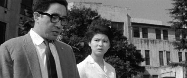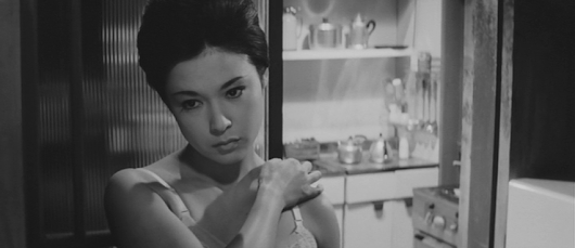 The film is a very well-made and -acted adult drama with a slightly eccentric and whimsical avant-garde jazz score I took to be the work of Toshiro Mayuzumi, but which was actually composed by Sei Ikeno, who did a number of other films for Masumura, including Red Angel. The cinematography by Masumura regular Setsuo Kobayashi (also a favourite of Kon Ichikawa) is first rate, with the widescreen frame used to full advantage and the range of compositions endlessly inventive. Masumura’s characteristically tight editing is also much in evidence, especially during a lengthy and apparently chaotic fight sequence. Indeed, almost all involved are at the top of their game here and in my opinion this is one of Masumura’s best films. Jiro Tamiya and Reiko Fujiwaraare perfect in their roles, while Wakao was so obviously an acting genius by this stage in her career that Masumura entrusts her with delivering the film’s ending through facial expression alone.