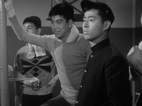 With the exception of one notorious sexual scene which had to be omitted, the film is faithful to the story and even adds a little flesh to the bones. Tatsuya is a student who abandons basketball in favour of boxing. Despite his young age, he’s already a womaniser, but meets his match when he becomes involved with Eiko, a young woman who claims she’s unable to fall in love. They have an on-again, off-again relationship, which at one point sees Tatsuya (without Eiko’s knowledge) taking 5,000 yen from his brother, Michihisa, in exchange for leaving the two alone so that Michihisa can attempt to seduce her. The story is apparently based on gossip related to Ishihara by his brother, Yujiro.