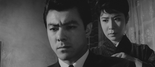 This is an enjoyable film with a fine performance by Rentaro Mikuni playing 15-20 years older than he actually was (33) as the largely sympathetic Shogo, a character who becomes a criminal purely through force of circumstance. On this occasion, Mikuni never overplays the role and it’s as if we can read Shogo’s every thought and feeling expressed in the actor’s face without his ever resorting to broad gestures. Mikuni is not always so effective, but in Crossroads of Death, he’s at the top of his game. Michiyo Aratama (who played the wife of Tatsuya Nakadai’s Kaji in The Human Condition) seems a little too wholesome to be anybody’s mistress, but is otherwise fine, while Shiro Osaka is memorably oily as the blackmailing detective.