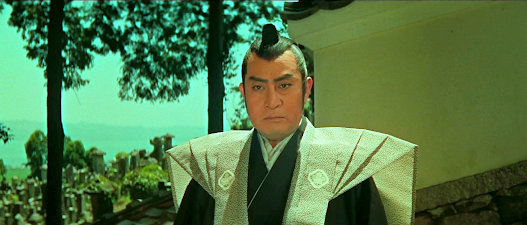 Most (if not all) ofthe cast had theatre backgrounds, and the acting is rather stagey, with many ofthe actors projecting their voices as if worried about not being heard in theback row. Given the formal context of most of thedialogues, the stiffness of some cast members is perhaps inevitable, but I’mnot sure there’s much excuse for Utaemon Ichikawa, who – with his demoniacallaugh – is such an old ham he’d make Tod Slaughter blush. It’s also a verymale-dominated movie, and the one female character (played by HirokoSakuramachi) has very little to do except be a victim. Fans of chanbara (sword-fighting films) shouldbe warned that there is very little action (with the climax even taking placeoff screen), but, on a more positive note, the battle of wills between the twosides is tense enough to hold the interest for the most part, and there’s a finescore by Chumei Watanabe.