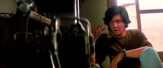 The opening credits sequence benefitsfrom a cool jazz theme by composer Teizo Matsumura featuring what sounds likemetal pipes being struck; this is followed by an abrupt silence and anattention-grabbing opening shot of a gun pointed directly at the camera. Noguchialso makes effective use of real locations and handles the action sequencesvery well. However, the most surprising aspect of the film is the amount ofsympathy it has for Kasahara, even though he’s killed two people, one of whom was a police detective. The film’s liberal message is clearly that he’s really just a scared kid who’s had a lousy life and is desperatelytrying to act tough because he lacked a positive role model.