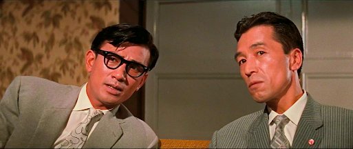 Usually cast in nice guyroles, leading man Keiji Sada probably relished the opportunity to play acomplete scumbag for a change, something he would go on to do again in hisfinal film, Sweet Sweat (1964). Talkingof sweat, there’s also a lot of that in this movie, which is set in Tokyo duringa heatwave and has everyone dripping throughout. Director Yoshitaro Nomura –best known for his Seicho Matsumoto adaptations such as Castle of Sand (1974) – was a very good director, but this is notone of his best and I couldn’t help feeling it’s the sort of material thatwould have been better in black and white. For all its cynicism, at heart thisis a superficial film – if watching a nasty guy do nasty things for 90 minutesbefore getting his comeuppance is enough for you, you might enjoy it, but it’sreally got nothing to say. I doubt that it was a box office success, especiallyas it appears to be the only film adaptation of a Hideo Shirasaki novel and Japanesefilm companies tended to raid an author’s work repeatedly if they had made any moneyfrom it.