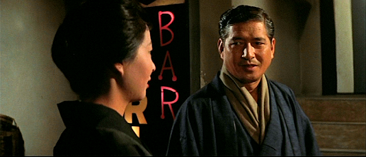 Yoko, a hostess who isweary of men, knows every seduction trick in the book only too well and seemsin danger of sliding into alcoholism, is 38 years old in the novel, and wouldhave been a perfect fit for Hideko Takamine, then 37. However, Tokyo Eiga wentwith the 28-year-old Junko Ikeuchi, whom they had just signed after herprevious studio Shintoho had gone bankrupt. Although she’s a little young forthe role, Ikeuchi could perhaps pass for a very well-preserved 38, but in anycase she gives an excellent performance and manages to put Yoko’s complexemotions across very well. The remainder of the cast are left fighting forscreen time as there are an unusually large number of important characters –indeed, it’s unusual to see Ryo Ikebe and Chikage Awashima in such small roles(Awashima plays the former mistress of Nogata’s deceased father). Sei Ikeno’sharpsichord-dominated score also adds a touch of class to the proceedings andnever tries to manipulate our emotions in an obvious way.