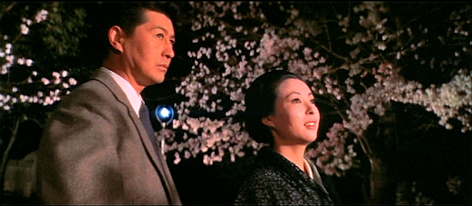 Based on aprize-winning novel of the same name by Shohei Ooka – best known for Fires on the Plain – the story of thisTokyo Eiga production (distributed by Toho) was inspired by the life of MutsukoSakamoto (1915-58), a Ginza bar hostess with whom Ooka had had aneight-year-long affair before she committed suicide. The adaptation by RyuzuKikushima (one of Kurosawa’s regular collaborators) is extremely faithful tothe book, which was translated into English as The Shade of Blossoms by Dennis Washburn and published in 1998 bythe University of Michigan Press (the title refers to the shade underblossoming cherry or plum trees). Both film and novel have an almost shockingly sadending without a trace of sentimentality, and director Yuzo Kawashima has donea fine job of bringing the story to life without imposing his own ego upon it.When he (or perhaps Kikushima) does add something – like Hata’s adopteddaughter killing a worm in the garden after her father has thoughtlesslypointed out to Yoko that she’s not his by blood – it’s entirely appropriate andhelps to illustrate the emotions of the characters.