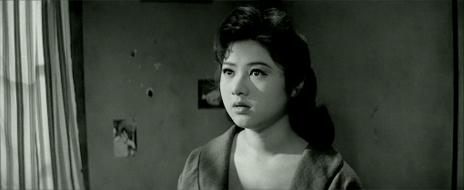 Kizaki’s investigations reveal that Kasahara was orphaned during the warand subsequently slid into a life of delinquency and petty crime. He loves Yoshiko(Hisako Tsukuba), who reciprocates his feelings, and we learn that he attemptedthe bank robbery after happening to see a vox pop interview in a cinemanewsreel in which Yoshiko was asked by a reporter what it was she most wantedand replied ‘Money!’ The police now realise that all theyhave to do is follow Yoshiko and Kasahara will turn up sooner or later…
