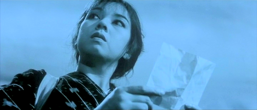 The first part of thefilm is in monochrome but, instead of black and white, a blue filter is used (the same effect which reappears in the later moonlight scene), which just seems odd. My guess is that this was done because the fact that the film was in colour was an important selling point in Japan in 1958, where colour films were not yet as common as in Hollywood. In fact, the film's posters state 'All natural colour' quite prominently. Perhaps the studio felt that, had they used standard black and white for the sequences set in the 1940s, some patrons might assume that the whole film would be like that, or at least feel cheated that part of it was. Another peculiarity of the film is a long split-screen montage ofAkemi and her pupils travelling all over rural Japan to give dance performancesoutdoors. Otherwise, it’s a fairly typical Daiei production, although a littlelonger than most at two hours. It’s the sort of story one might have expectedto come from the pen of Toyoko Yamasaki, but in fact Kaneto Shindo’s screenplaywas an original work. The director is Kozaburo Yoshimura, who frequentlycollaborated with Shindo, and had a reputation for bringing out the best infemale stars such as Machiko Kyo – a reputation which this film certainlysupports. Even though it lapses into full-on melodrama at the end, Kyo’s performancealone is enough to make this one worth watching.
