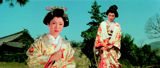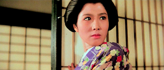 Surprisingly,this Toei production is not based on a literary source – the intelligent screenplaywas an original work by Masashige Narusawa (who wrote and directed therecently-reviewed Cards Are My Life).In this case, the director is Kosaku Yamashita, perhaps best-known for the sameyear’s Big Time Gambling Boss. Itlooks like he put a great deal of care into this, and was ably abetted bycinematographer Juhei Suzuki (13Assassins), not to mention those responsible for the costumes and artdirection, whose combined talents make this film a feast for the eyes which exploitsthe colour format to the fullest. Ichiro Saito’s orchestral music is also an integralpart of the film and is another asset that marks it out as being far fromroutine.
