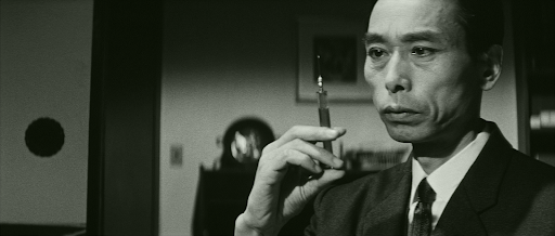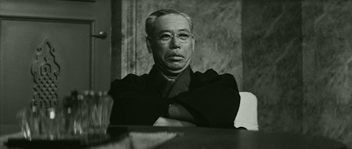 The film has somewonderful cameos by familiar faces such as Jun Hamamura as a doctor who lookslike he could use some of his own medicine, Seiji Miyaguchi as a privatedetective who looks like he hasn’t had a client for years, Tetsuro Tanba as ayakuza boss and, best of all, Takashi Shimura as a shark-like banking bigwigwho exudes an aura of self-confidence and power and is appropriately trailedeverywhere by his silent, pilot-fish-like mistress (Machiko Kitagawa).