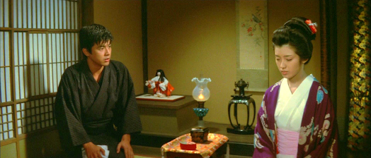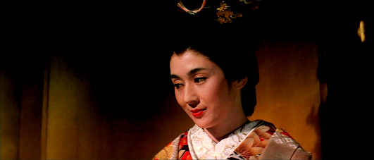 Initially, Sasuke gets into trouble for being more concernedwith looking after Okoto and learning music than he is about learning the trade.However, Okoto has become extremely stubborn and difficult to deal with sincelosing her sight, so her parents decide to release Sasuke from his normalduties and allow him to be Okoto’s full-time companion – even paying for him tohave music lessons from Okoto’s teacher – in the hope that this will soothe heranger and improve her character. Meanwhile,Okoto’s beauty has led to her attracting the attention of wealthy playboy Minoya(Masahiko Tsugawa), who begins laying plans to seduce her…