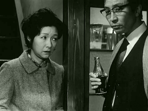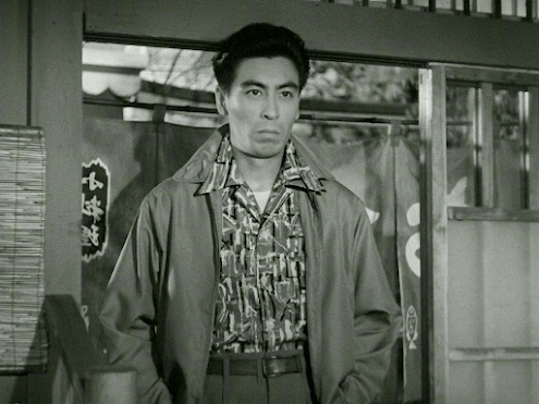 I was hoping forsomething a little grittier from this film, more along the lines of YuzoKawashima’s Suzaki Paradise: Red LightDistrict (1956). Instead, what we get is a rather contrived melodrama witha plot hinging on a massively unlikely coincidence. The film was written anddirected by Koji Shima, and occupies something of a middle ground among his films,being neither total hack work nor anything especially impressive artistically,although he throws in a few of his trademark symbolic shots (in this caseincluding rolling pachinko balls and a broken sake bottle) and there's also a well-staged fight scene which takes place in heavy rain.