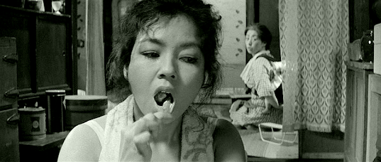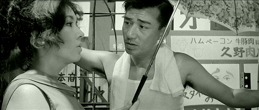 Bonus trivia: This wasthe second film (after Masumura’s TheKiss) out of 21 to co-star Hiroshi Kawaguchi and Hitomi Nozoe. They marriedin 1960 and remained together until his death in 1987.