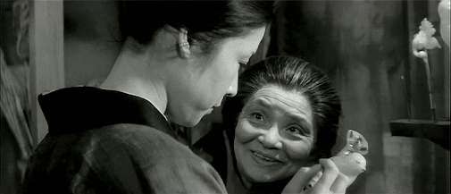 Their future looksbleak when a conniving old woman (Toyoko Takechi) comes with a proposal: arecently-widowed kimono-shop owner called Suezo (Eitaro Ozawa) wants Otama forhis mistress and will provide her and her father with separate places of theirown as well as an allowance each if they agree. (Supposedly, Suezo feels thathe can’t invite Otama to live with him because his two young children wouldn’taccept her). Seeing no better opportunities on the horizon and worried abouther father, Otama agrees.