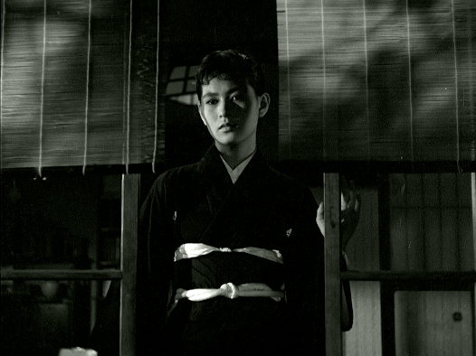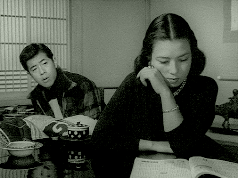 To return to the film’suse of metaphors, a new sports centre is being built outside Tamiko’s familyhome, and construction noises are audible in every daytime scene set in thatlocation – clearly a deliberate if unusual choice, and one that I think was intendedto suggest that the old way of life is coming to an end. As in therecently-reviewed film A Rainbow at EveryTurn (1956), military jets fly over in several scenes, including right at the end,implying an uncertain future not just for Tamiko and what’s left of her family,but for the Japanese people as a whole. But Uchida never represents hischaracters in this film as simple victims of change – many of them areunlikeable and are pursuing selfish goals, and in various ways they bring theirmisfortunes on themselves. Perhaps the title refers to more than one of thecharacters after all.