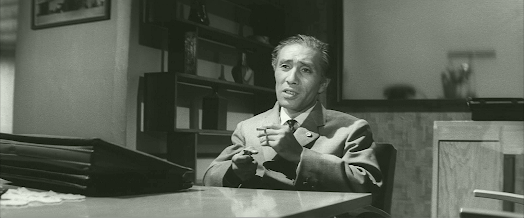 This Shochikuproduction stars Keiji Sada as Hagisaki, the deputy head of an accountsdepartment whose boss, Sekino (Masao Oda), commits suicide. Hagisaki receives aletter from the dead man explaining that he felt it was the only way to takeresponsibility for losing 30 million yen of the company’s money as a result ofa scam.