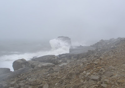 Last weekend we headed over to Portland and looked down from the heights at the waves crashing against Chesil Beach. This was a calm spell between the storms, but the sea was still a churning whiteness. At the height of the storms the waves have been overtopping the bank, the beach road flooded, the island cut off.