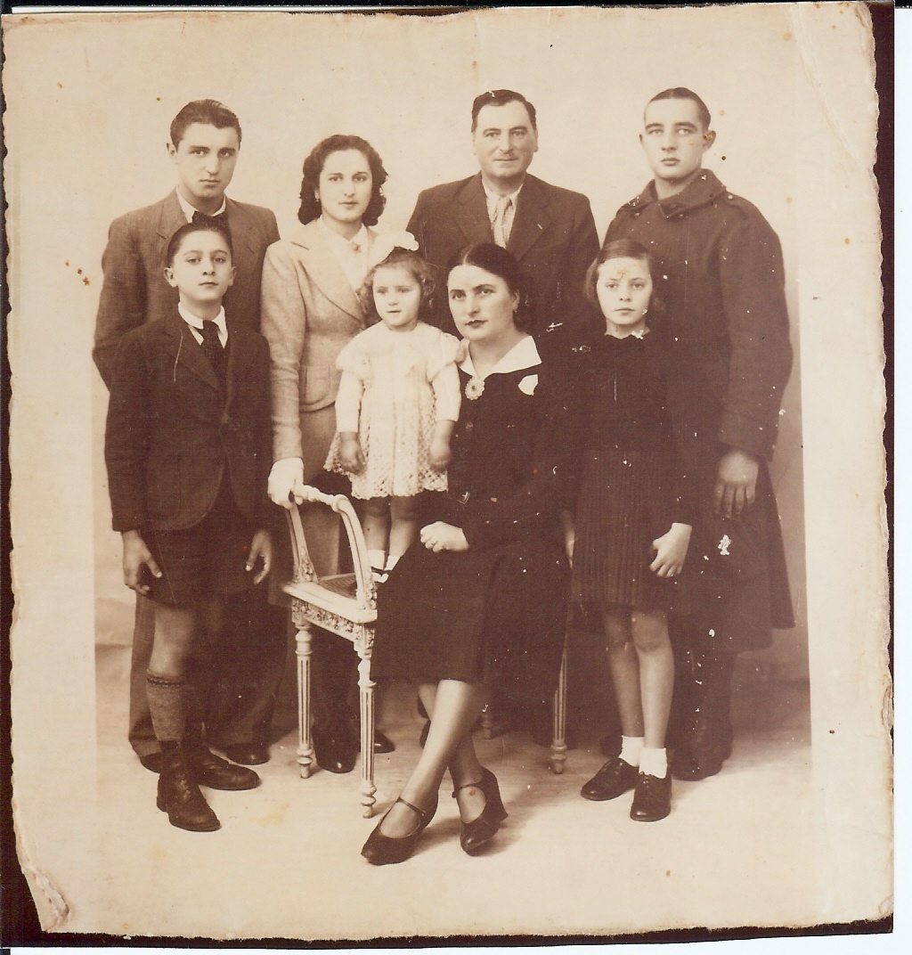 Famille Cantrel, 1940. My mother is standing on the chair. Marcel is in his uniform. My great-grandparents had a mixed and colourful background, since they came from Spain, France and Italy to settle in Algeria in the nineteenth century. They were what French people call