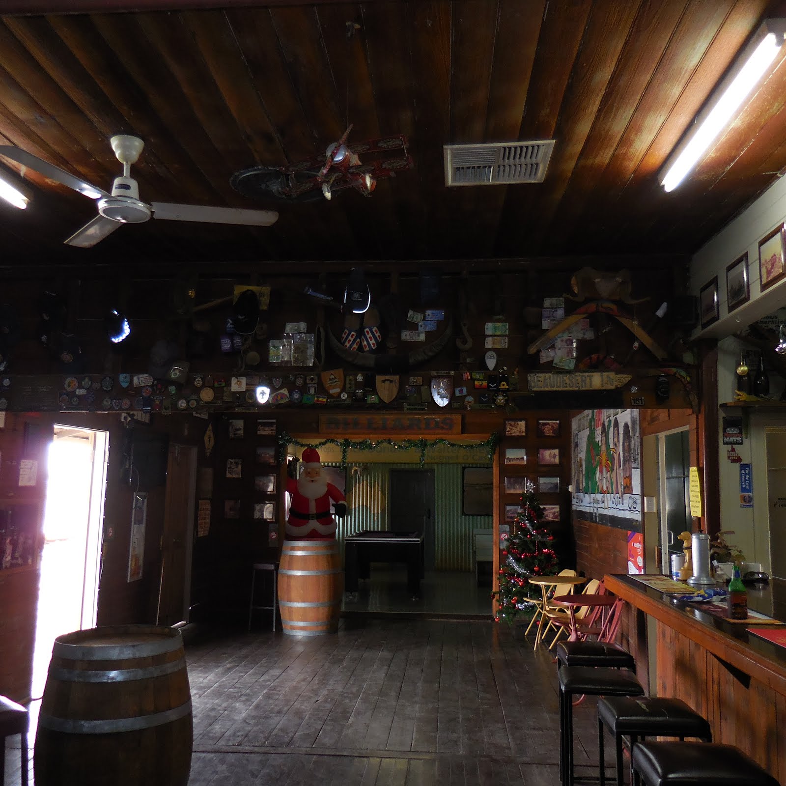 We had departed Mt Isa at a reasonable hour in the morning and had driven hours across open dry flat country with nothing much to see except for plenty of roadkill. I admit outback Queensland is in terrible drought and it is very sad to see the state of the stock, sheep and cattle are in desperate condition.It was a well earned reprieve to see the oasis of the tiny town of Kynuna, population – 20 and the famous pub. We wet our whistle, had a chat to the locals while taking in the sights of the bar which was adorned with movie memorabilia and before long were back on the road.