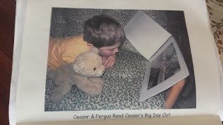 I belong to a wonderful group of writers and authors with a common interest, that is, encouraging kids to learn to read through new and interesting children’s literature. This month we have a theme to post suggestions on book making with kids. Mine was all about collaborative class journals that produce oodles of opportunities for kids to both read and write. What more could you want from a making books together?The project encourages reading and writing for all students from the most basic level, that includes those beginning Kindergarten in the earliest pre-writing stage up to independent writers in classrooms in years 2 or 3. As the year progresses, the journal entries develop and intrigue each student who participates, consequently encouraging them to share their stories and adventures. Students are eager to open the pages of the journal each day to read the next anticipated entry.Kids writing a class journal was a project I worked on several years ago when I was teaching kindergarten, however as mentioned above it can be used in classes ideally from K-2. It encourages both learning to read and write. The premise begins with introducing a new member to the class, (or a class pet), someone that the students have to learn to take care of. The animal in question is a soft stuffed toy that they can cuddle and take anywhere. In our case, our class was given a soft cuddly lion cub which we named Caesar.