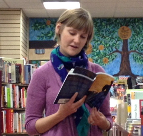 Kelly reading from IN NEED OF A GOOD WIFE. This was before the smoke alarm went off in the store, and in every store on the block.