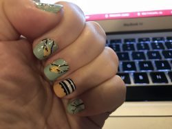 I’ve gone through all the stages of natural, tips, acrylic, and gel nails over the years, but one thing stays the same. I prefer the way my hands look when my nails are polished. I see my hands all day long tapping at the keyboard and it bothers me if they look unkempt (to me) which means some kind of plain or wacky manicure. While I’m an accessory maven, I can’t type with bracelets on and rings sometimes bother me. I love earrings and necklaces, scarves, pins, and shawls, but you can’t SEE those unless you’re looking in the mirror. I enjoy “doing” my nails while I watch TV (Heaven forbid I do only one thing at a time, I know). I relax when I do my nails. It gives my brain a much needed break. (As a am a trend-hopper I’m now using nail wraps. Best. Thing. Ever. No dry time. Right back to typing.) This inspires me because what’s better than a relaxing but productive break?