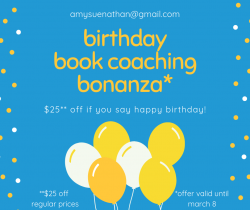 My second wish is that if you know someone in need of a book critique or a book coach, pass along my name and the special deal (or use it yourself). See, that was easy, wasn’t it?