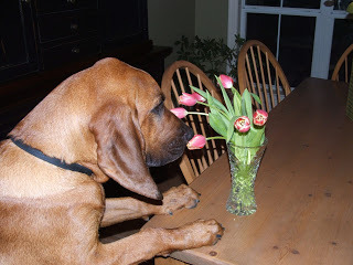 Gus enjoys moments with food or flowers.When the universe was handing out patience, I must have been in the bathroom. Because I got hardly any of that stuff. But I do have an overabundance of anxiety and nerves and restless energy, which just means they were handing those out with doughnuts, and of course I went back for seconds. But if you are a writer, you will have to learn patience.As the wise old sage that I am, I always tell my students to stop looking forward to things in their future and learn to enjoy the present. The present is the only thing we have, and if we are always wanting our days to speed by to get to the next thing, those days will oblige us, and before we know it, too many days have passed and few are lying ahead. So as a teacher, I am full of advice.