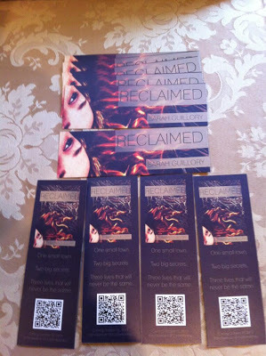 Also, on Saturday I received a huge box of Reclaimed bookmarks from SHP. Aren't they gorgeous? They have the tagline on the back, which I love. One small town. Two big secrets. Three lives that will never be the same.