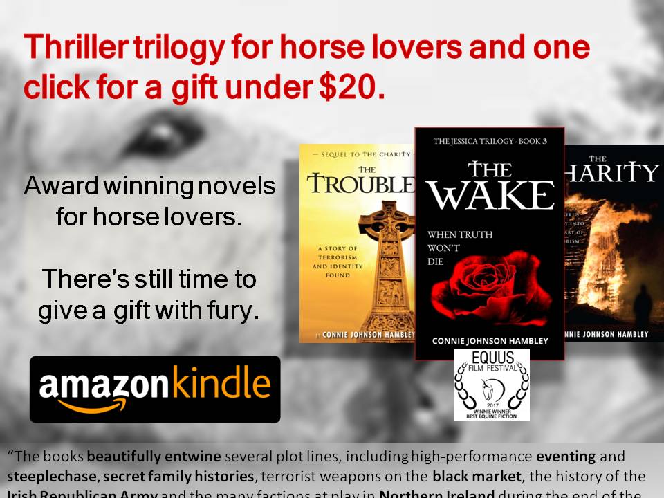 Okay, that's it folks. I'm taking a deep breath. Think about it...All that happened in just four days! I'll keep the comments open for a week or so since I'll be traveling again to NYC and the EQUUS Film Festival. THE WAKE is up for an award! Yippee! THE TROUBLES won last year, so my fingers are crossed THE WAKE can follow in her big sister's footsteps! (Oh, and click through the link, find THE WAKE, and "like" it. Every bit of author love helps!) Last year's event was terrific. I met Debbie Loucks, Monty Roberts' (the real Horse Whisperer) daughter who interviewed me for an upcoming podcast. Stay tuned for more.