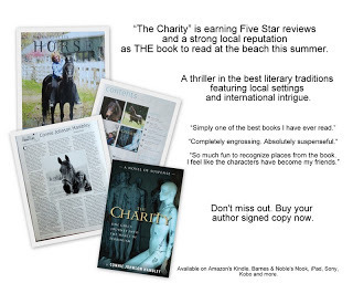 This picture is of an active book group near where I live. They had read about my book, The Charity , in a local paper and chose it as their October selection. One of their members reached out to me because the book is set on the North Shore and relates to a passion of hers, horses. Learning I live close by, she offered a tour of the New England Equine Rescue facility as an enticement to join them. I happily accepted her invitation for an evening of chardonnay and laughter as we shared impressions and insights of the book. They said they rarely agree on whether a selection was liked by each member of their group, but The Charity won their unanimous praise.