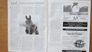 The June/July issue of Massachusetts Horse magazine just hit the news stands. I'm pleased to have been featured in a very nice two page article. It proved the concept that sometimes the best way to find readers not to club them silly and drag them by their hair to your book. Sometimes a bit of finesse works wonders. I know what you're thinking...horse?
