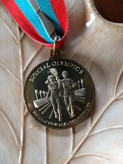 Last night I had the incredible honor of being the guest speaker at the Windrush Farm Gala. I've written and spoken about Kathy and my experience as a volunteer, but I never dreamed I'd be asked to speak in front of a crowd of hundreds. I was glad I could hide my shaking knees behind the podium. The standing ovation was a shock, but what really tugged at me was receiving one of Kathy's Special Olympics gold metals from her family afterward. -cjh