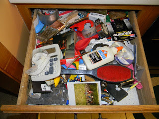 seize on any excuse to purge crap.This month, I arrived to my writers' group a little frantic and frazzled. My washing machine split a hissy (this should provide insight into the level of my mechanical skills) and drained the entire tub of water onto the floor. The tile floor of the laundry room survived, but the wood floor, sheet rock, carpet, etc. of my husband's adjacent office did not. Let's just say our productivity has taken a nose dive. The silver lining is that this forced hubby to empty said office of superfluous crap...and there was more of that than he cares to admit to. Andy Warhol has nothing on the time capsules of junk unearthed in hubby's "sanctuary."