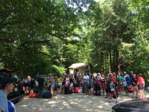 Families anxiously await the bugle call, signaling the happy beginning of a summer camp session at Camp Minikani.