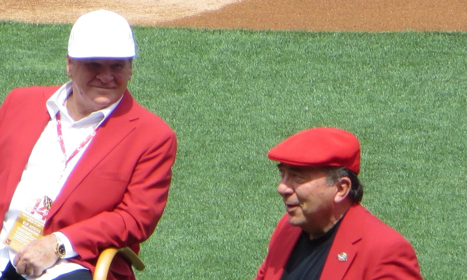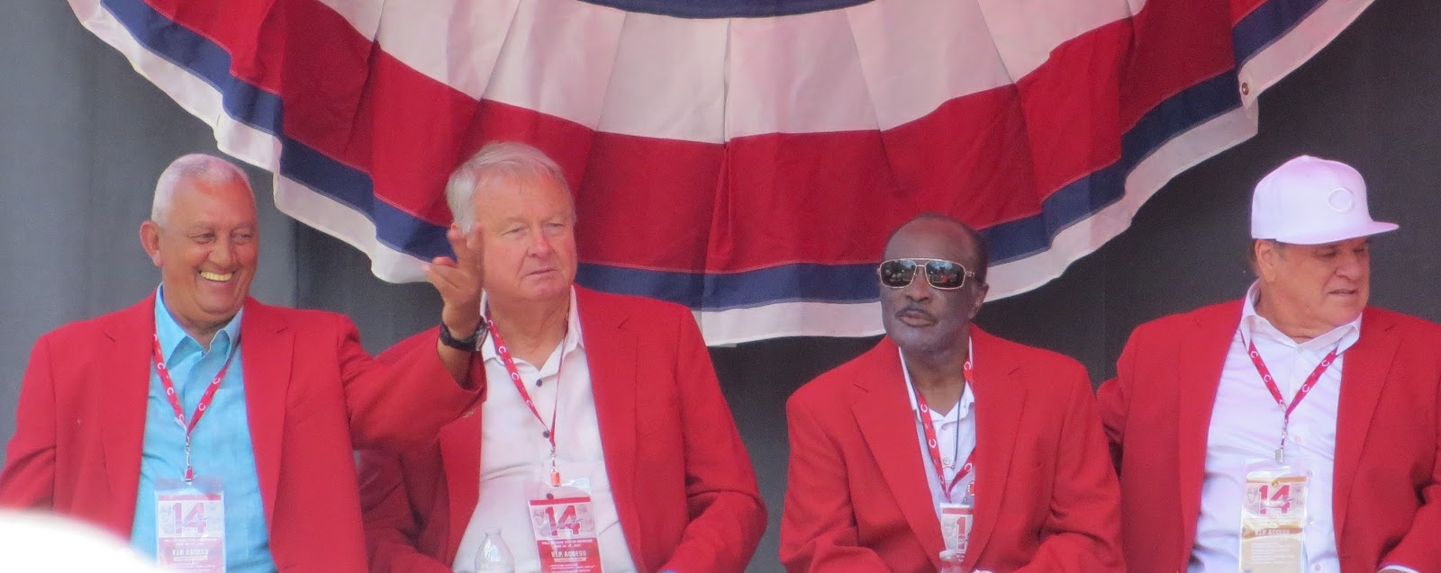 After telling the crowd, "I love these guys up here," Rose proceeded to show his love in his unique way--with insults: "I met Tony Perez in 1960 at Geneva, New York. I was 2 days out of Western Hills high school here in Cincinnati and he was 3 months out of Cuba. I've known him for 57 years. I was just talking to him back there and I still have no idea what he's saying."