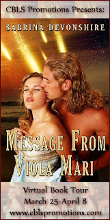 <!-- /* Font Definitions */ @font-face {font-family:Calibri; panose-1:2 15 5 2 2 2 4 3 2 4; mso-font-charset:0; mso-generic-font-family:auto; mso-font-pitch:variable; mso-font-signature:3 0 0 0 1 0;} @font-face {font-family:"Book Antiqua"; panose-1:2 4 6 2 5 3 5 3 3 4; mso-font-charset:0; mso-generic-font-family:auto; mso-font-pitch:variable; mso-font-signature:3 0 0 0 1 0;} /* Style Definitions */ p.MsoNormal, li.MsoNormal, div.MsoNormal {mso-style-parent:""; margin-top:0in; margin-right:0in; margin-bottom:10.0pt; margin-left:0in; line-height:115%; mso-pagination:widow-orphan; font-size:11.0pt; font-family:"Times New Roman"; mso-ascii-font-family:Calibri; mso-ascii-theme-font:minor-latin; mso-fareast-font-family:"Times New Roman"; mso-hansi-font-family:Calibri; mso-hansi-theme-font:minor-latin; mso-bidi-font-family:"Times New Roman";} @page Section1 {size:8.5in 11.0in; margin:1.0in 1.25in 1.0in 1.25in; mso-header-margin:.5in; mso-footer-margin:.5in; mso-paper-source:0;} div.Section1 {page:Section1;} </style>--> <br /><div class="separator" style="clear: both; text-align: center;"><a href="http://3.bp.blogspot.com/-38VHhjZOg0c..." imageanchor="1" style="margin-left: 1em; margin-right: 1em;"><img border="0" height="200" src="http://3.bp.blogspot.com/-38VHhjZOg0c..." width="320" /></a></div><div class="MsoNormal" style="line-height: normal; margin-bottom: .0001pt; margin-bottom: 0in; mso-pagination: none; text-align: justify; text-indent: .2in;"><span style="color: black; font-family: "Book Antiqua"; font-size: 12.0pt;">Today's Hump Day Hook comes from my erotic sci fi, MESSAGE FROM VIOLA MARI. Marissa's best friend, Jennifer, coaxed her into taking a science fiction writing workshop and on day one, scientist Marissa is feeling very out-of-her-element in more ways than one...</span></div><div class="MsoNormal" style="line-height: normal; margin-bottom: .0001pt; margin-bottom: 0in; mso-pagination: none; text-align: justify; text-indent: .2in;"><br /></div><div class="MsoNormal" style="line-height: normal; margin-bottom: .0001pt; margin-bottom: 0in; mso-pagination: none; text-align: justify; text-indent: .2in;"><span style="color: black; font-family: "Book Antiqua"; font-size: 12.0pt;">I'm currently in the middle of a two-week virtual book tour for this work, so if you'd like to register to win a free copy, simply click on the link for the tour (below) and sign up. Good luck :-) </span></div><div class="MsoNormal" style="line-height: normal; margin-bottom: .0001pt; margin-bottom: 0in; mso-pagination: none; text-align: justify; text-indent: .2in;"><span style="color: black; font-family: "Book Antiqua"; font-size: 12.0pt;">________________________________________________________________</span></div><div class="MsoNormal" style="line-height: normal; margin-bottom: .0001pt; margin-bottom: 0in; mso-pagination: none; text-align: justify; text-indent: .2in;"><br /></div><div class="MsoNormal" style="line-height: normal; margin-bottom: .0001pt; margin-bottom: 0in; mso-pagination: none; text-align: justify; text-indent: .2in;"><br /></div><div class="MsoNormal" style="line-height: normal; margin-bottom: .0001pt; margin-bottom: 0in; mso-pagination: none; text-align: justify; text-indent: .2in;"><span style="color: #cc0000;"><span style="font-family: "Book Antiqua"; font-size: 12pt;">“I’ve opened this book to a chapter from a famous sci-fi romance, <i style="mso-bidi-font-style: normal;">Dangerous Entanglements</i>.” He laid the book down on my desk and rotated it. “Marissa, will you please read the first three paragraphs?” </span></span></div><span style="color: #cc0000;"> </span><br /><div class="MsoNormal" style="line-height: normal; margin-bottom: .0001pt; margin-bottom: 0in; mso-pagination: none; text-align: justify; text-indent: .2in;"><span style="color: #cc0000;"><span style="font-family: "Book Antiqua"; font-size: 12pt;">“Oh, fine,” I answered, rolling my eyes. My face warmed. <i style="mso-bidi-font-style: normal;">Why can’t I unclothe him in my mind without being noticed?</i></span></span></div><div class="MsoNormal" style="line-height: normal; margin-bottom: .0001pt; margin-bottom: 0in; mso-pagination: none; text-align: justify; text-indent: .2in;"><br /></div>If you'd like to read some more author hooks, please <a href="http://www.humpdayhook.blogspot.co.uk/" target="_blank">follow this link</a>.<br /><div style="text-align: center;">______________________________________________________________</div><br /><div class="MsoNormal" style="line-height: normal; margin-bottom: .0001pt; margin-bottom: 0in; mso-pagination: none; text-align: justify; text-indent: .2in;"><span style="color: black; font-family: "Book Antiqua"; font-size: 12.0pt;">Here's the short blurb for this book:</span></div><div class="MsoNormal" style="line-height: normal; margin-bottom: .0001pt; margin-bottom: 0in; mso-pagination: none; text-align: justify; text-indent: .2in;"><span style="color: #cc0000;"><span style="font-family: "Book Antiqua"; font-size: 12pt;"><span style="font-size: 18px;">The man who makes Marissa crazy is the only one she wants. But it's a bad time to let lust call the shots when a comet cloud is careening toward Earth and Marissa's the only one who can save everyone.</span></span></span></div><div class="MsoNormal" style="line-height: normal; margin-bottom: .0001pt; margin-bottom: 0in; mso-pagination: none; text-align: justify; text-indent: .2in;"><a href="http://sabrinadevonshire.blogspot.com..." target="_blank"><span style="color: black; font-family: "Book Antiqua"; font-size: 12.0pt;"><span style="color: #ffaa56; font-size: 18px;">Check out the CBLS Virtual Book Tour for this book </span></span></a></div><div class="MsoNormal" style="line-height: normal; margin-bottom: .0001pt; margin-bottom: 0in; mso-pagination: none; text-align: justify; text-indent: .2in;"><br /></div>